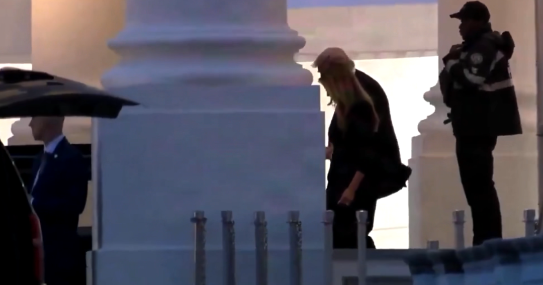 ▲美总统特朗普及其夫人撤离晚宴现场