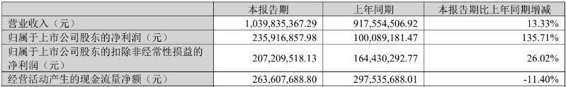 2026年一季度,受益于药品销售持续放量,贝达药业实现营业收入10.40亿元,同比增长13.33%;归母净利润为2.36亿元,同比增长135.71%;在剔除公允价值变动收益等非经常性损益后,更能反映主营业务盈利能力的扣非归母净利润约2.07亿元,同比增长26.02%。