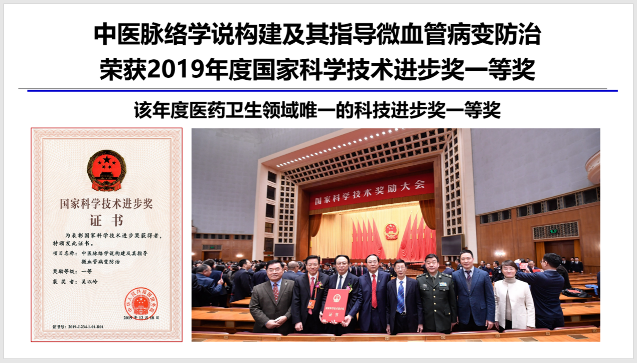 由此,建立了中国中西医结合学会血管-脉络病专业委员会,并连续召开了12届中国中西医结合血管病学大会。“中医脉络学说构建及其指导微血管病变防治”荣获2019年度医药卫生领域唯一一项国家科技进步一等奖,列入新时代中医药标志性科技成果(2012-2022),名列第一大类别“中医药新学说新学科形成”首位。