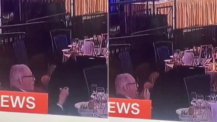 美国白宫晚宴日前发生枪击案,全场宾客纷纷惊恐躲到桌下避难,但网民在新闻报道画面中,发现有一名男子稳坐在椅子上、面不改容继续享用餐点,相关画面在网上疯传。