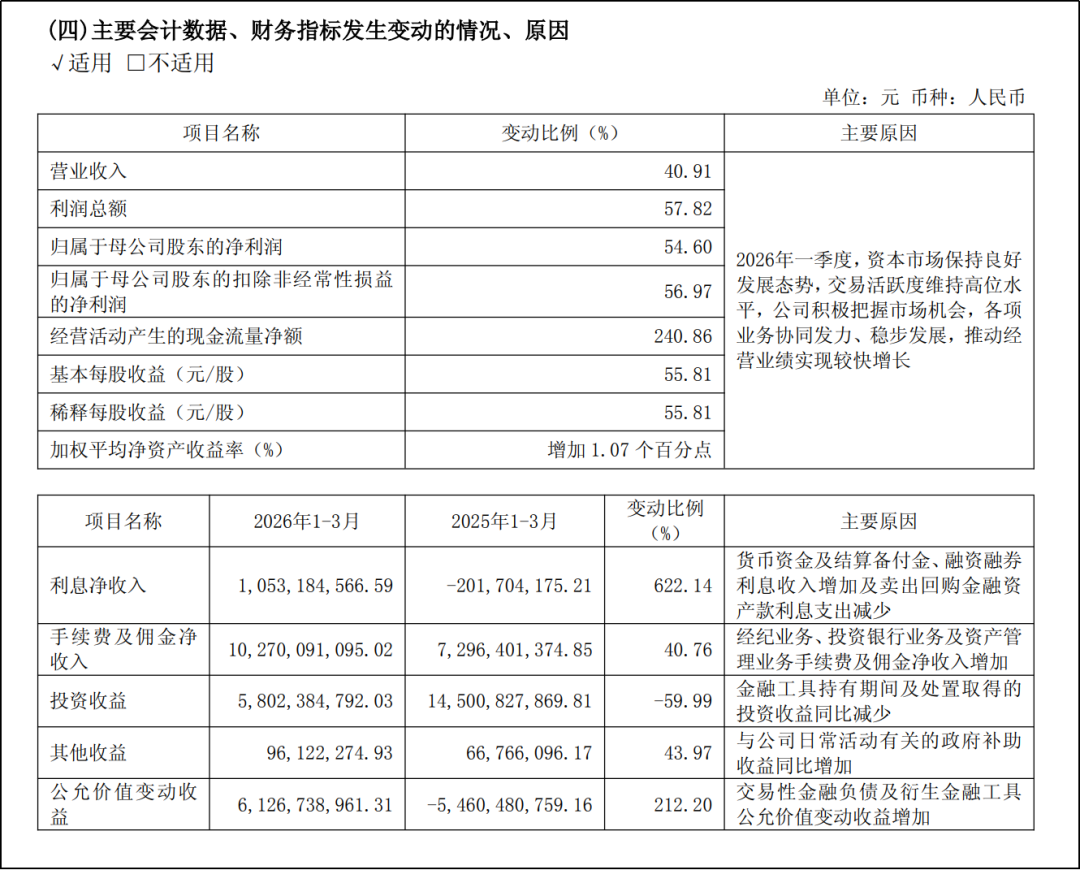 4月24日,中信证券(06030.HK/600030.SH)公布了2026年一季度财报。整体来看,核心数据增长强劲: