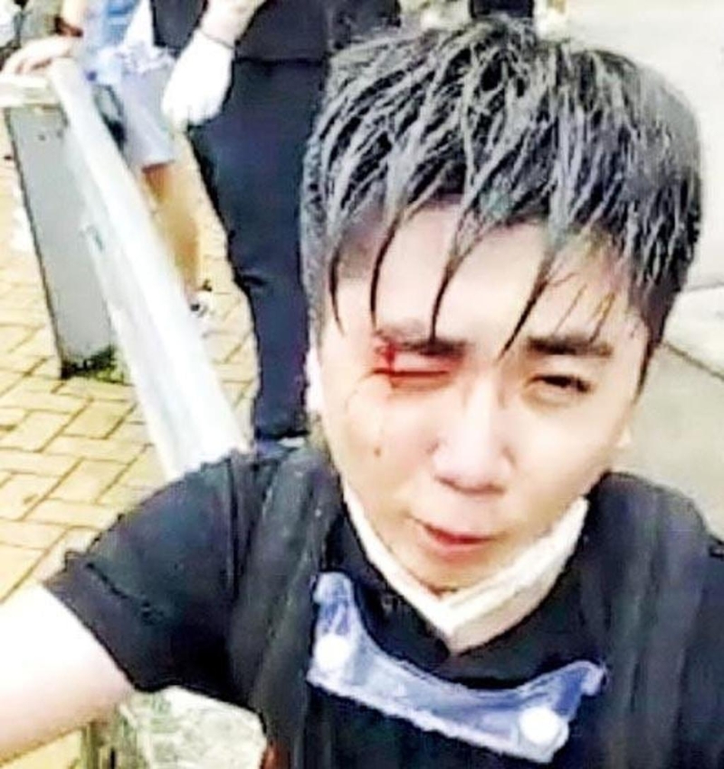 杨子俊在2019年6月21日的金钟冲突中右眼受伤。网图
