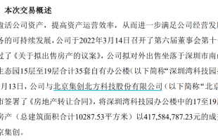 近日ST联建发布公告,公司与北京集创签署了《房地产转让合同》,将深圳湾科技园办公楼17至19层合计21套自有房产以4.18亿元的价格出售,总建筑面积合计10287.53平方米,均价约4.06万元/平方米。