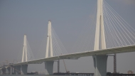 粤港澳大湾区重大交通基础设施项目南(广州南沙)中(中山)高速公路洪奇门特大桥西主塔6日封顶。南中高速公路洪奇门特大桥西主塔现场技术员陈作群称,西主塔封顶意味着洪奇门特大桥这一...