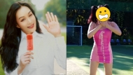 钟丽缇荧光粉红造型跳健身操,双马尾白袜子配浓妆惹网民批评