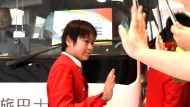 国家队访港︱代表团中午抵达机场,现场举行欢迎仪式,陈国基向全红婵打招呼