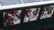 巴黎奥运国家队代表团昨日(29日)抵港访问3日,他们黄昏到湾仔会展出席由特区政府主办的欢迎晚宴回到位于尖沙咀的下榻酒店。