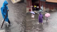 河北洪水│男子被冲落河险遭没顶,体力不支命悬一线视频热传