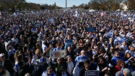 英国有数以千计挺巴勒斯坦的示威者,周一在以色列驻伦敦大使馆外聚集,抗议以色列空袭巴勒斯坦。英国入境事务国务大臣罗伯特·詹里克警告,在街头宣扬哈马斯恐怖主义属严重刑事罪。