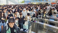 国庆75周年︱上海十一出游人潮涌现,部份地铁关站疏人潮