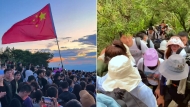 在广东深圳,在国庆假期首日(10月1日),众多游客前往梧桐山游玩,部分游客选择在晚上爬山看日出。 可在到达山顶后,有游客发现放眼望去全部都是人,自嘲脚都不知道往哪里放,上去的...