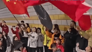 10月2日,川藏线小天都隧道塞车近4个小时,一些年轻人带头落车放起了音乐,众人落车挥舞红旗齐唱《我和我的祖国》。