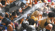 挺巴示威者闯以领馆抗议,扰攘数小时70余人遭逮捕