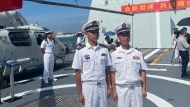 访港的山东舰航母编队,继续第二日开放予公众参观,不少成功预约的市民登船参观解放军海军湛江舰和运城舰,忙于与舰上的装备“打卡”,及与官兵合照,气氛热闹。