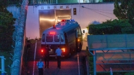 台北地检署侦办京华城案、柯文哲政治献金案,侦查已进尾声。检方29日中午再提讯民众党主席柯文哲调查,这是柯文哲遭延押后第2度被提讯,顶着光头的柯,神情落寞下囚车,进入北检。