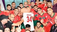 历史性杀入8强,摩洛哥全队高举34号球衣庆祝原因感人